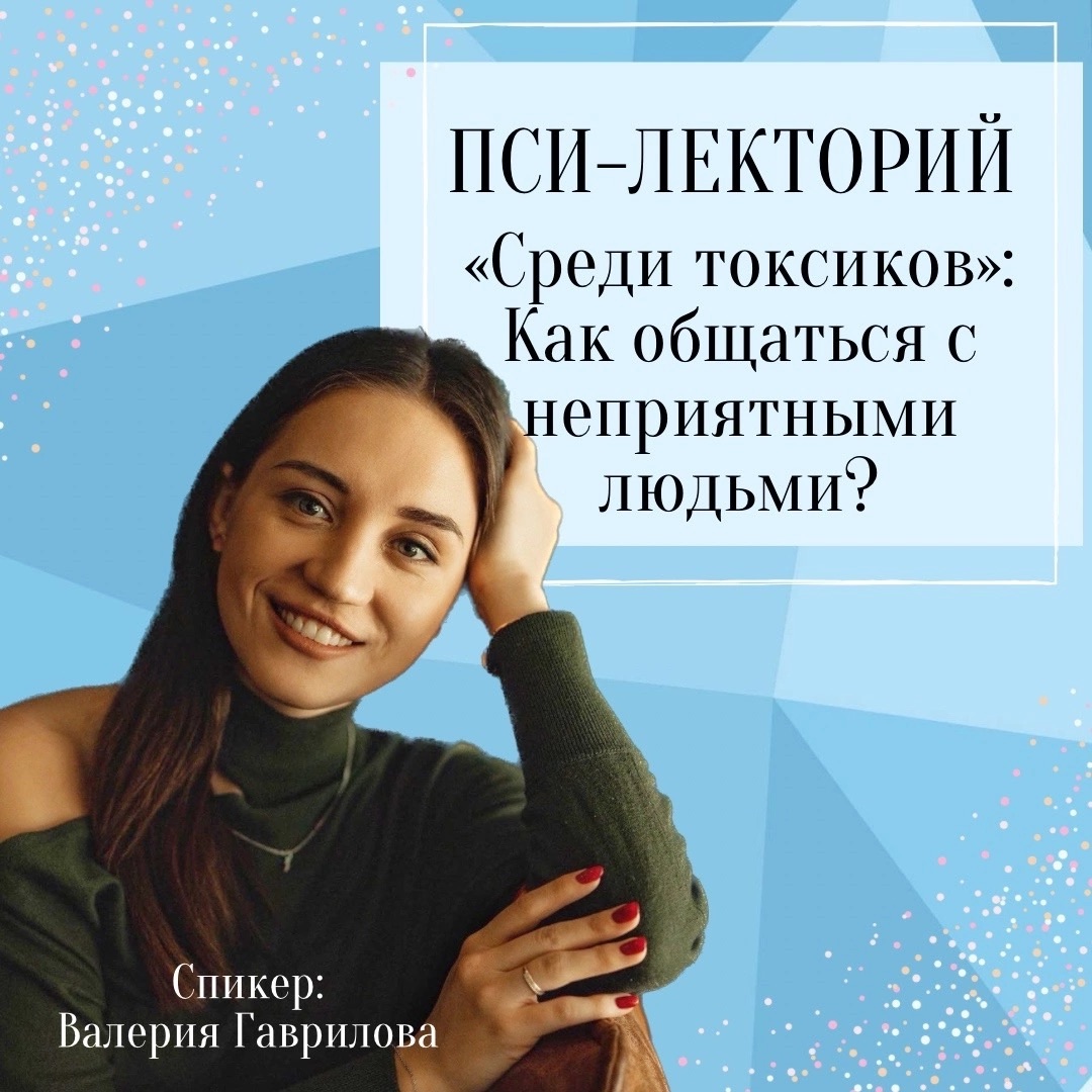 Об этом вы сможете узнать на нашей встрече. Мы поговорим о причинах такого поведения, дадим вам лайфхаки, которые помогут построить общение с «токсичными людьми».